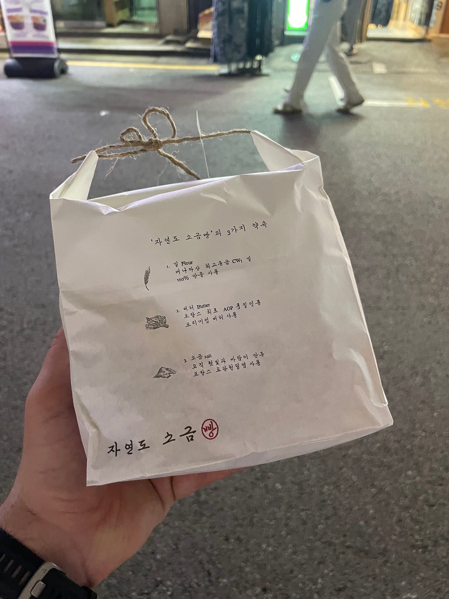 Somewhere between a croissant and a Costco dinner roll, Jayeondo Sogeumppang is the most popular place to get Salt Bread in Seoul. Perfectly baked, seasoned with salt directly from Paris. Assumably brought over from Paris by my good friend Lynn in his 36kg suitcase.